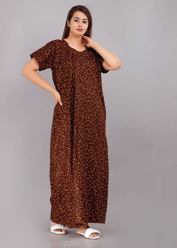 We offers this delicately rich long Printed nighty dress for a sweat free comfort all night long. This a perfect pick for women who are fond of stylish nightwear. This short sleeved nighty is a must have for your night wear needs. Made with 100% soft Cotton to keep you cool all throughout.
