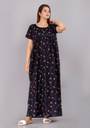 We offers this delicately rich long Printed nighty dress for a sweat free comfort all night long. This a perfect pick for women who are fond of stylish nightwear. This short sleeved nighty is a must have for your night wear needs. Made with 100% soft Cotton to keep you cool all throughout.