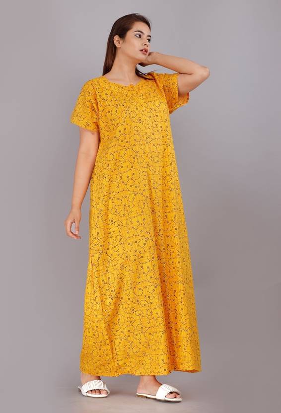 We offers this delicately rich long Printed nighty dress for a sweat free comfort all night long. This a perfect pick for women who are fond of stylish nightwear. This short sleeved nighty is a must have for your night wear needs. Made with 100% soft Cotton to keep you cool all throughout.