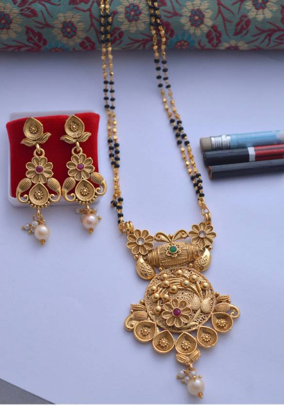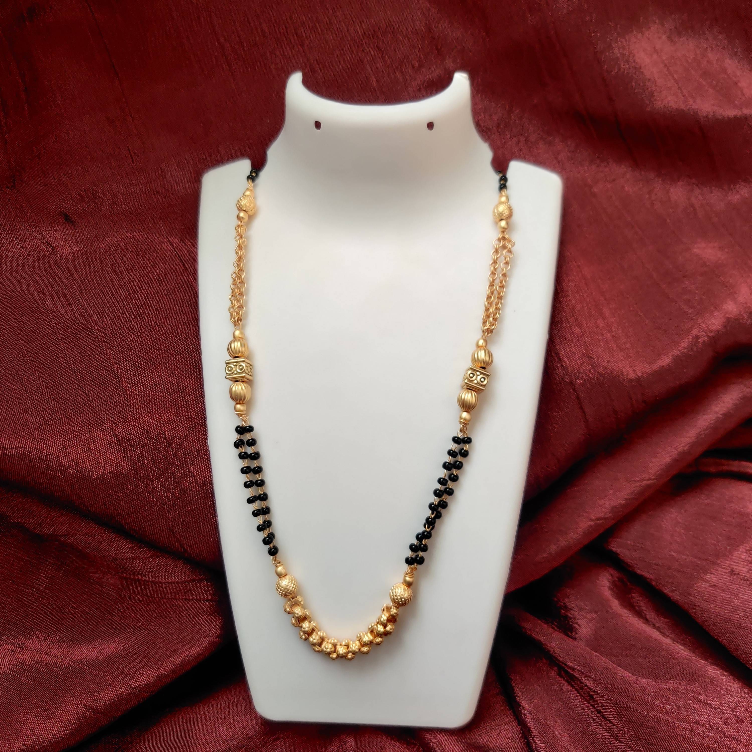 Elegant and stylish 24 inch fold over head micro gold plated daily as well as party wear mangalsutra with matching earrings for women , it will add charm to your already beautiful personality.