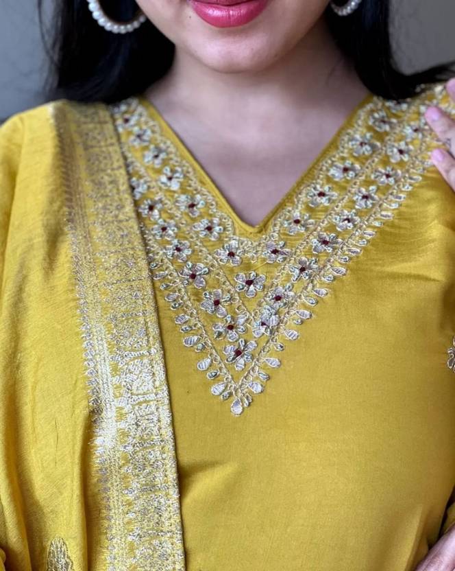 AALO FASHION Embroidered Kurta, Trouser/Pant & Dupatta Set