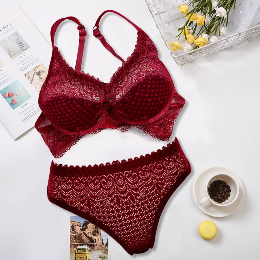 aamarsh Bra & Panty Set Self Design Maroon Lingerie Set