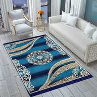 Aanam 5 ft X 7 ft Acrylic Carpet (Square, Blue, Gold)