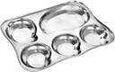 Aandhi Pack Of 4 High Quality Stainless Steel Dinner Plate || 5 in 1 Bhojan Thali With Mango Shape Compartments Sectioned Plate (Pack of 4, Microwave Safe)