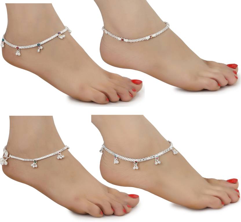 White Metal Light Weight Artificial Anklets Alloy Anklet (Pack of 4)