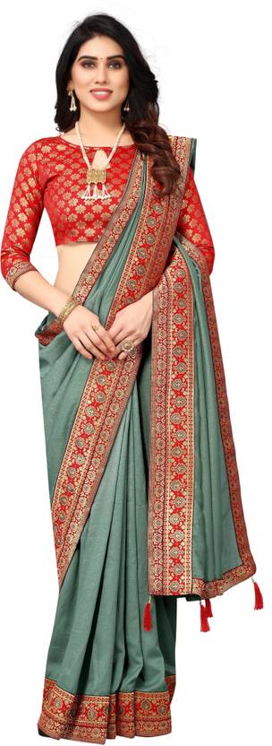 AANZIA Embroidered Bollywood Polyester Saree (Light Green)