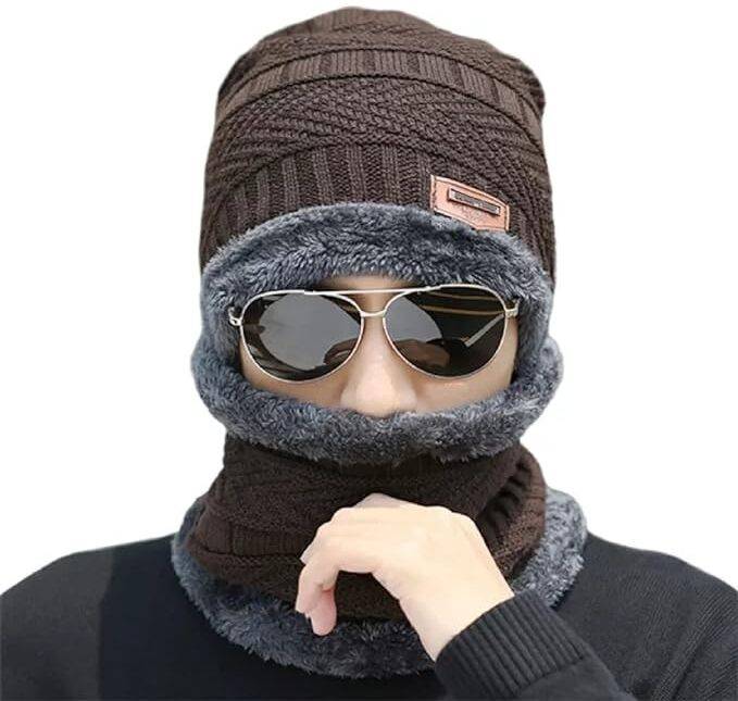 This is winter beanie cap.Our winter caps will keep you warm.perfect for stylish look in winter.Constructed with soft wool,fur with interesting shape both are two layers.it covers your ears,neck and whole hair Also it has very soft hand feel. This knit has best fits for men and women,adult and teenagers head. It can easily customize it to fit other sizes as well. Wearing this winter caps during all yours outdoor indoor activities.This stylish beanie has a light weight.Durable and easy to care.it cames with a scarf keeps you looking good in cold weather,stay warm all the time.