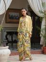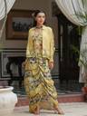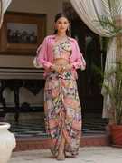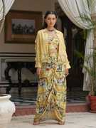 This stunning Indo Western Set blends modern cuts with traditional elegance. Featuring a printed crop top paired with a draped pant and a lightweight embellished shrug, the outfit radiates charm and sophistication. The vibrant floral and tropical motifs bring a refreshing summer vibe, while the flowy silhouette ensures comfort and grace. Perfect for festive occasions, weddings, resort wear, or stylish evening gatherings, this ensemble beautifully combines contemporary fashion with an ethnic touch.