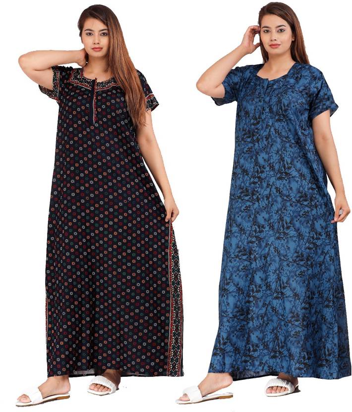 We offers this delicately rich long Printed nighty dress for a sweat free comfort all night long. This a perfect pick for women who are fond of stylish nightwear. This short sleeved nighty is a must have for your night wear needs. Made with 100% soft Cotton to keep you cool all throughout.