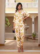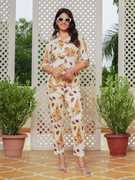 Try These Printed Co-ord set For Womens & Girls. This Co-ords Type top and bottom set Has 3/4 Sleeve with printed Pattern. This Co-ords Made By Cotton Fabric. it Gives The Wearer A Slimming Appearance And Has A Very Graceful Fall, Making It A Great Fabric. Which You Can Pick For Any Season And Occasion For The Best Comfort. Boasting a beautiful printed design, this women's co-ords set adds a glamorous flair to your wardrobe. The vibrant and distinct pattern makes a bold style statement, allowing you to stand out with confidence wherever you go. Also, owing to this design, you can easily wear this set on various occasions with ease. Crafted from lightweight and breathable fabric, this women's co-ords set offers both comfort and durability. The lightweight material keeps you feeling cool and fresh, making it ideal for all-day wear, while its breathability ensures proper airflow, preventing discomfort caused by sweating.