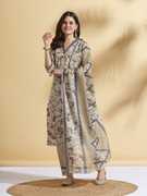 Our 3-piece maroon printed poly crepe suit set features a floral print straight-fit kurta with a notched v neck and comfortable full sleeves. Complemented with trousers with a partially elasticated waistband and roomy pockets, and a dupatta. Adorned with captivating floral prints, this style is perfect for elevated everyday wear.