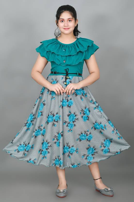 AARAV CREATION Girls Calf Length Festive/Wedding Dress (Green, Cap Sleeve)