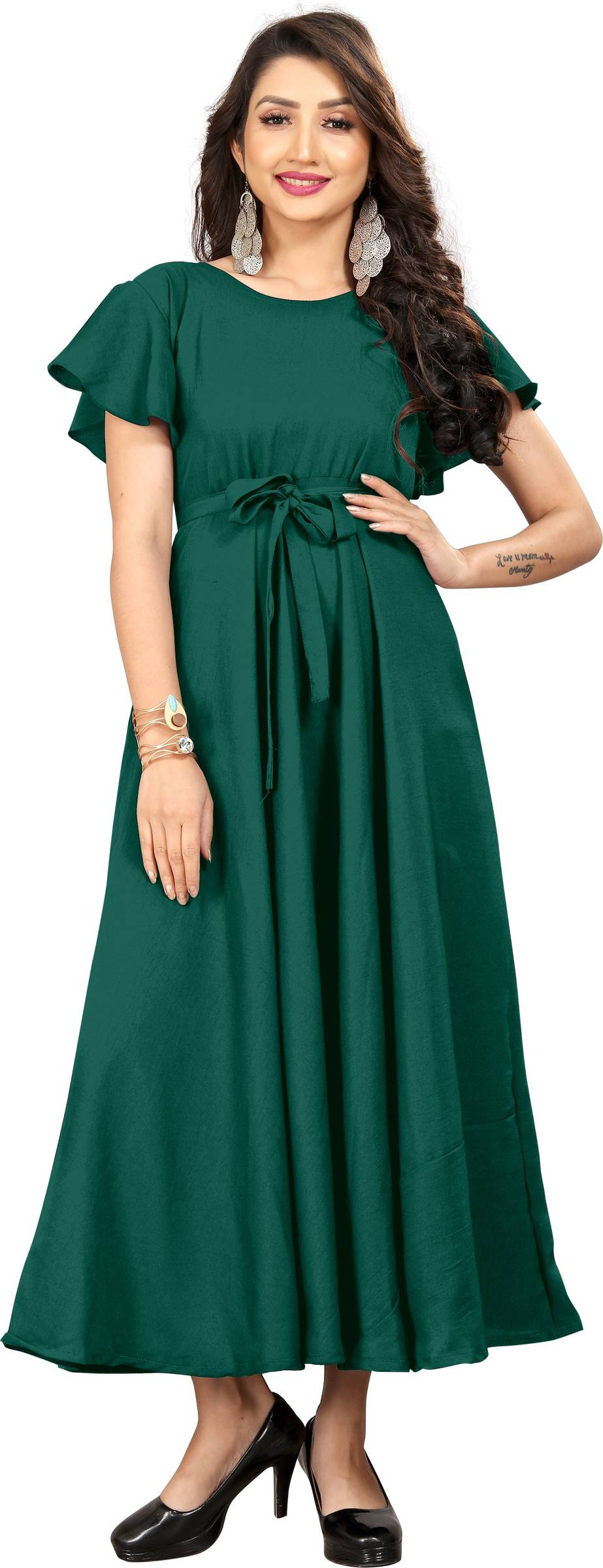 Dyed Crepe Stitched Flared/A-line Gown (Dark Green)