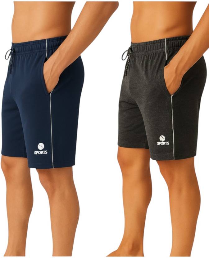 Pack of 2 Solid Men Dark Blue, Dark Grey Regular Shorts
