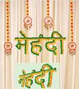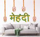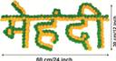 Decoration for wedding mehndi ceremony celebration, use in photo booth for mehndi ceremony function,mehndi ceremony home decoration, Set of 5 items : MEHNDI emblem/logo made of cotton yarn flowers wih merigold flower and fancy ethenic hangings