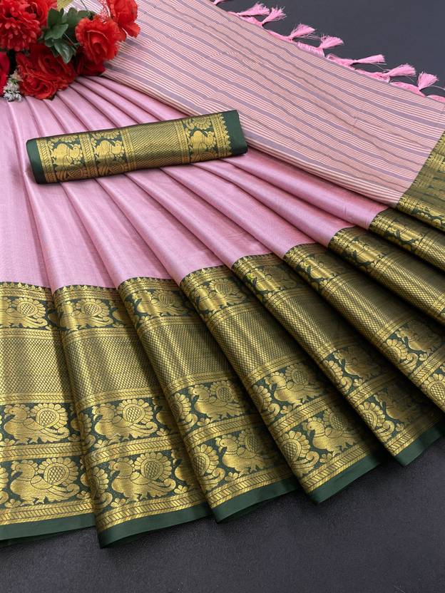 Woven Banarasi Jacquard Saree (Pink)