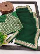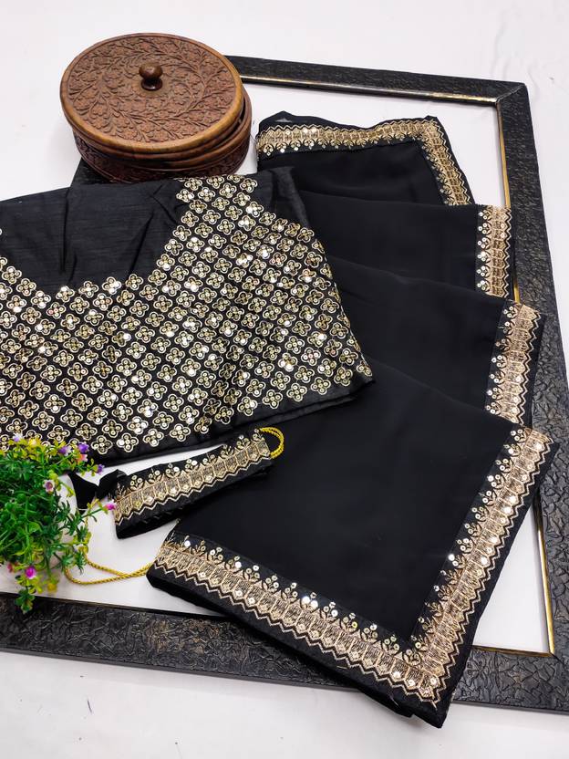 Fency Disener Georgette Pretty Sarees With New Fency Border With Blouse Piece.