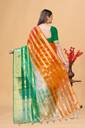 These sarees are often worn during patriotic occasions, national celebrations, or on Independence Day and Republic Day in India. They serve as a symbol of national pride and are a popular choice among individuals who want to showcase their love and respect for their country. A "Tiranga organza Silk Sari" is likely a saree that is designed and colored to resemble the Indian national flag, which is also known as the "Tiranga" due to its three colors. The Indian national flag consists of three horizontal stripes of equal width. From top to bottom, the colors are: