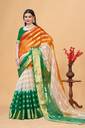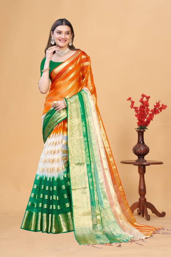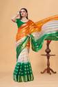 Design: The sari is specifically designed to replicate and 15th August the colors and pattern of the Indian national flag, known as the Tiranga. It features three horizontal stripes of saffron, white, and green, arranged in the correct order and width to resemble the national flag.
