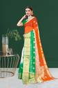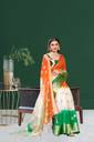 These sarees are often worn during patriotic occasions, national celebrations, or on Independence Day and Republic Day in India. They serve as a symbol of national pride and are a popular choice among individuals who want to showcase their love and respect for their country. A "Tiranga organza Silk Sari" is likely a saree that is designed and colored to resemble the Indian national flag, which is also known as the "Tiranga" due to its three colors. The Indian national flag consists of three horizontal stripes of equal width. From top to bottom, the colors are: