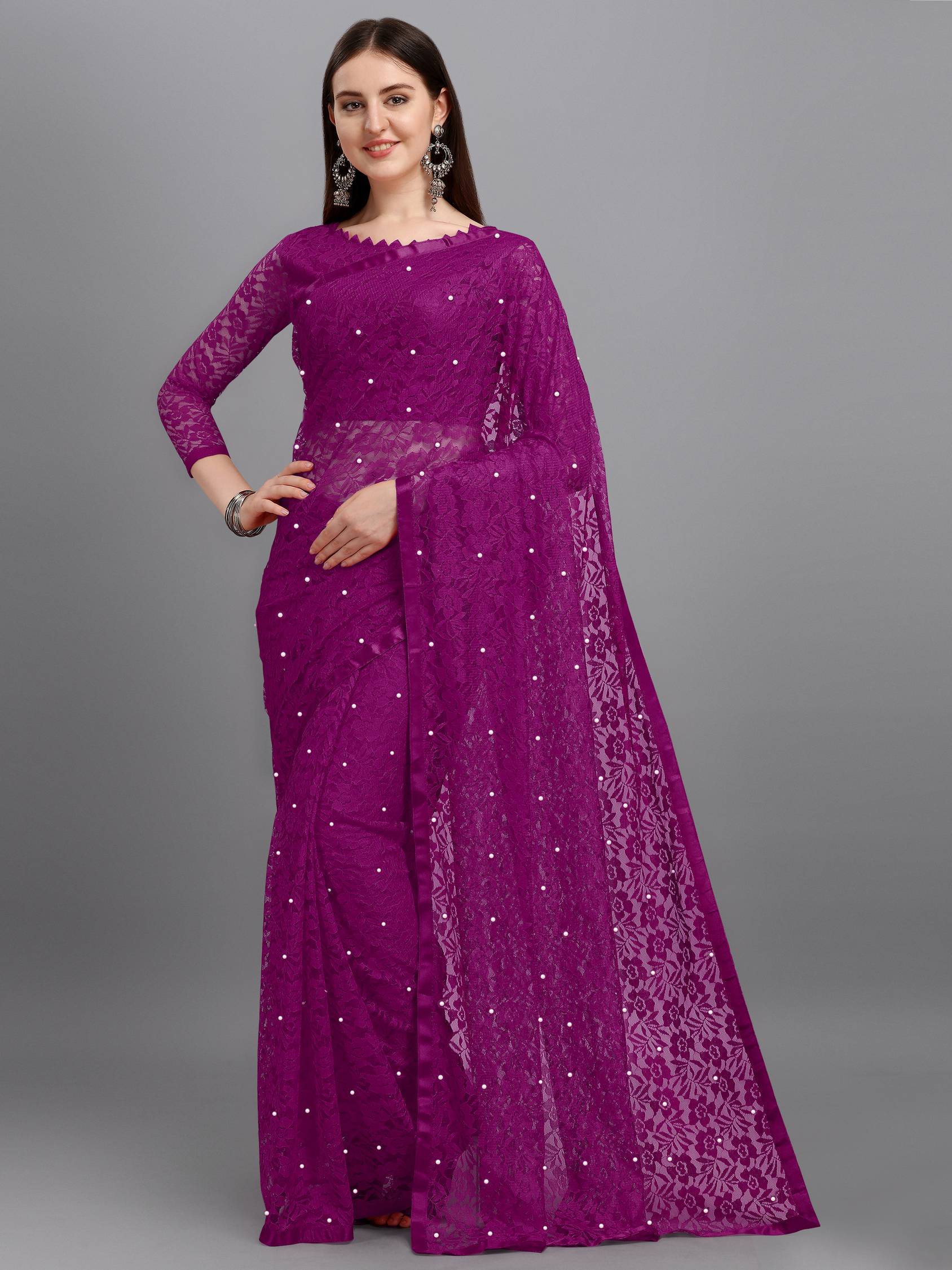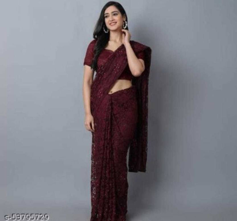 Aarya creation Self Design Bollywood Net Saree (Maroon)