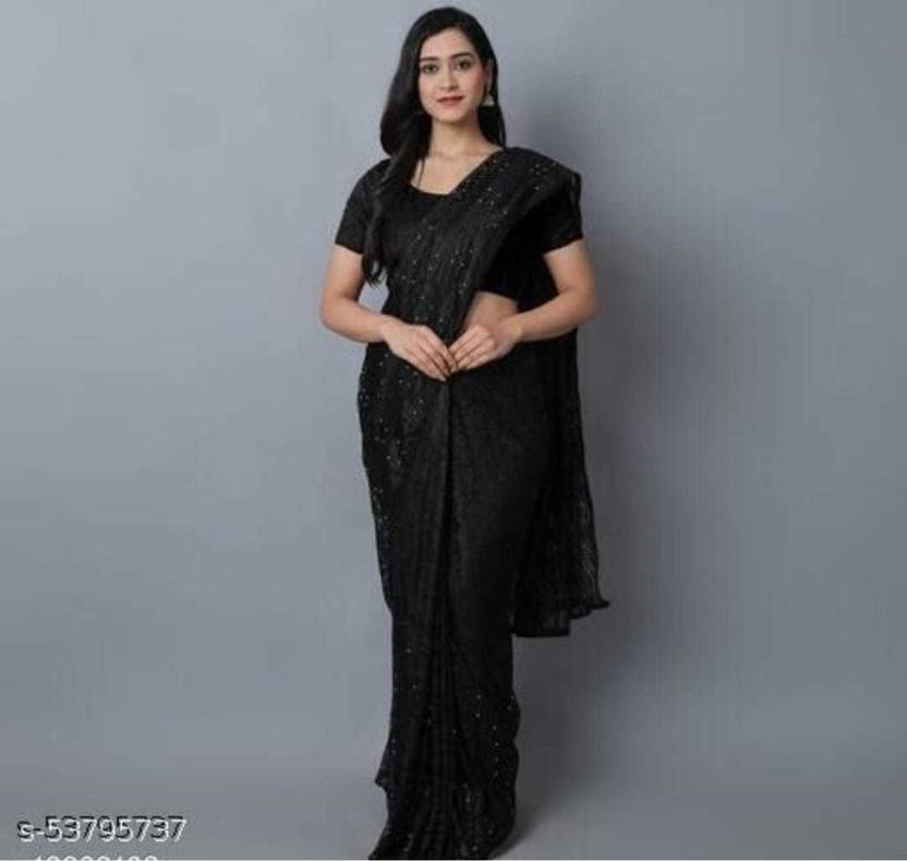 Aarya creation Self Design Bollywood Net Saree (Black)
