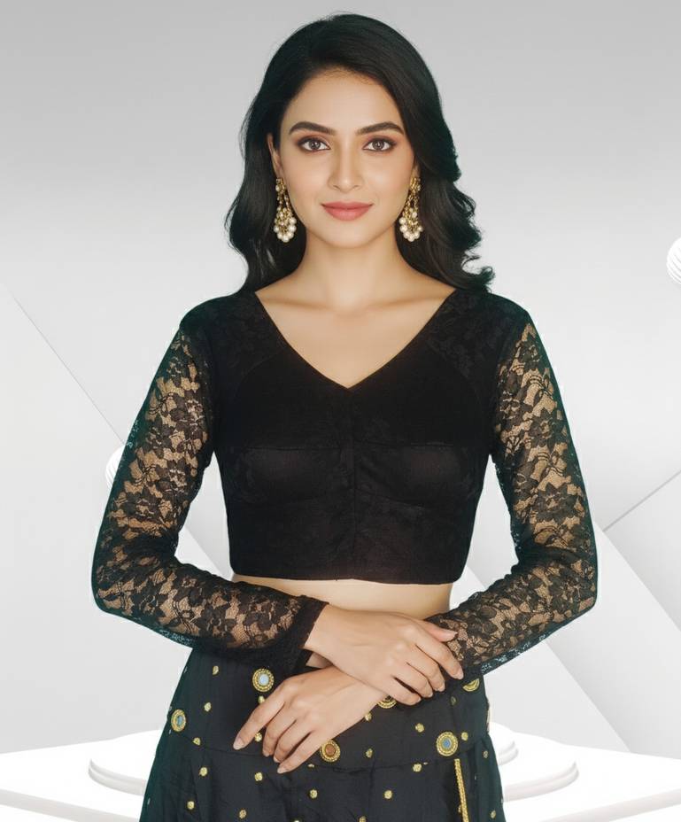 Aarya creation Self Design Bollywood Net Saree (Black)