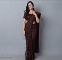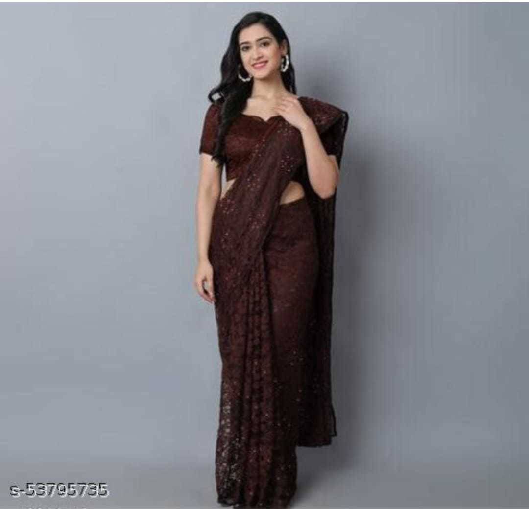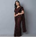 Aarya creation Self Design Bollywood Net Saree (Brown)