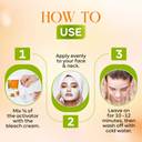 The bleach cream may be applied by mixing about a quarter of the activator with the cream. This mixture has to be immediately applied evenly all over the face and neck. After leaving it on for about fifteen minutes, the cream may be washed off with clean water.
