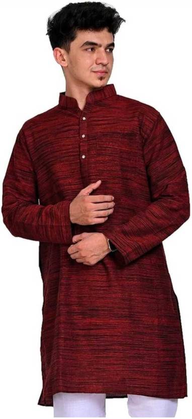 Men’s Solid Maroon Khadi Cotton Kurta – Festive & Ethnic Wear