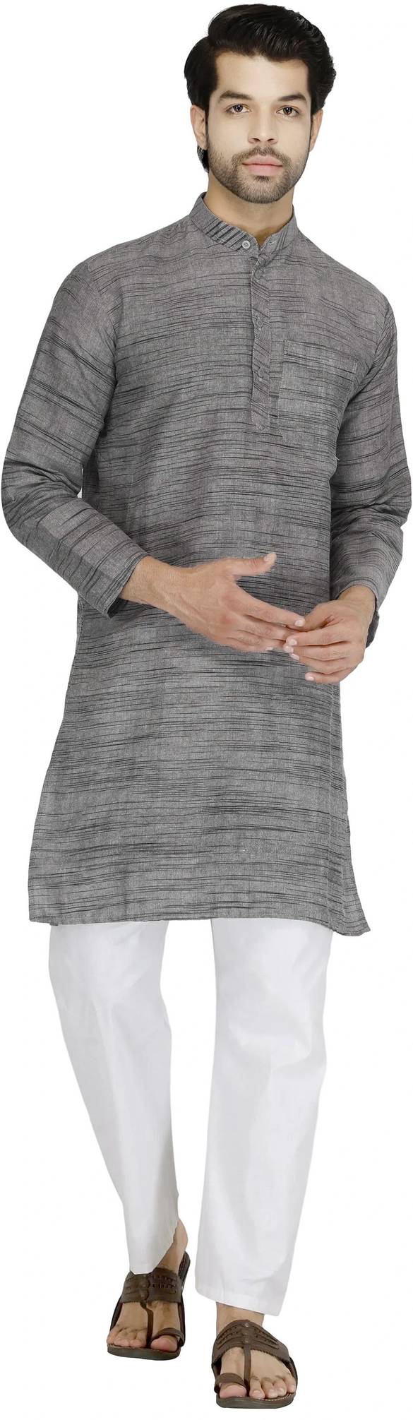 Aaryavar Men Self Design Straight Kurta (Grey)