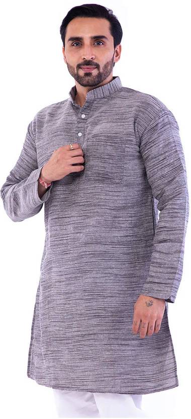 Aaryavar Men Self Design Straight Kurta (Grey)