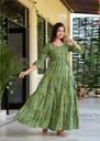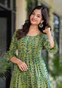AASHLEY Printed Cotton Rayon Stitched Flared/A-line Gown (Green)