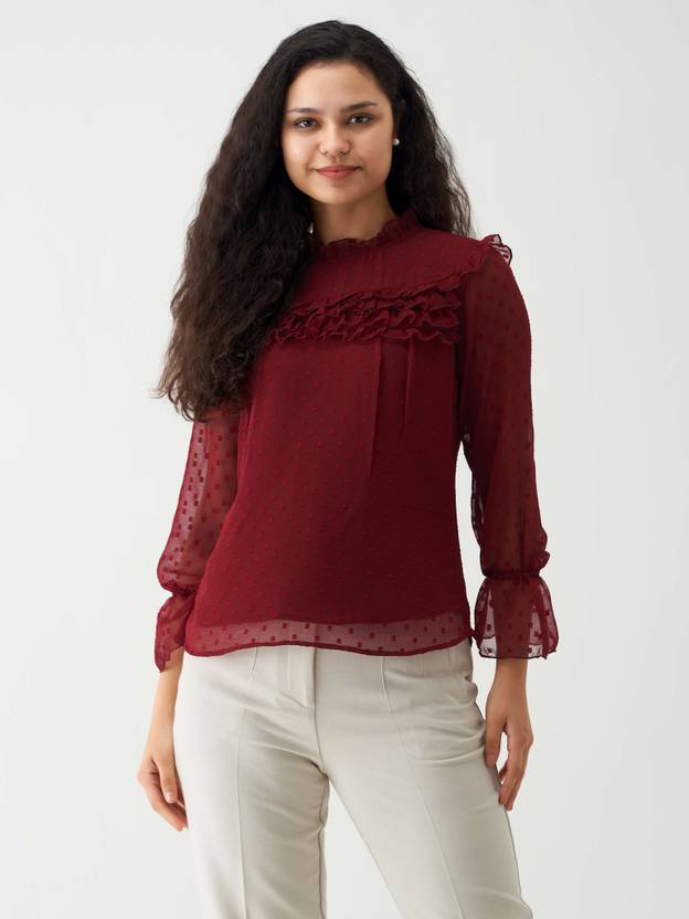 AASK Polyester Solid Plain Maroon Color Regular Top