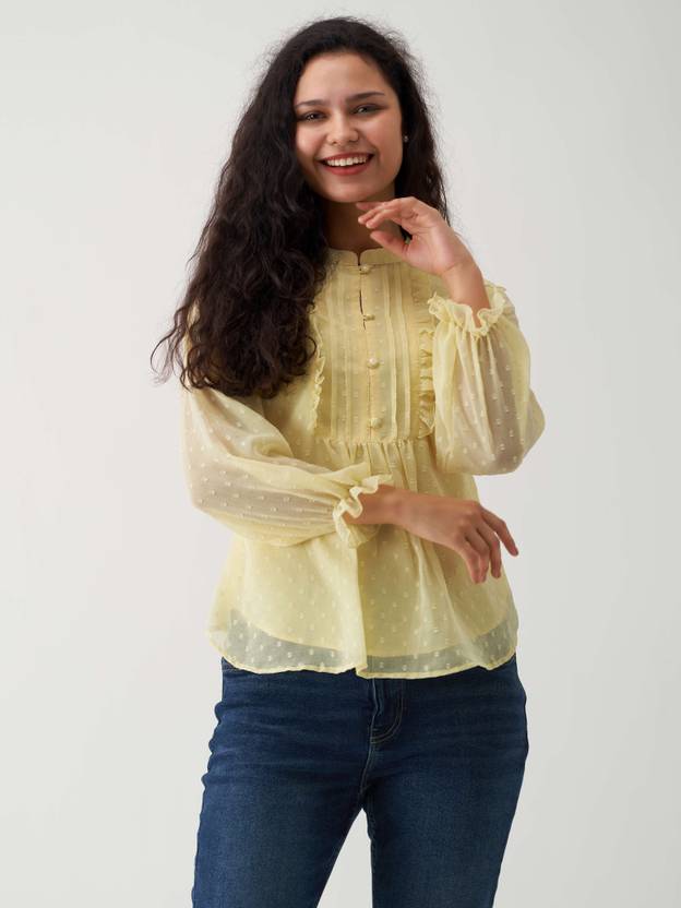 AASK Polyester Solid Plain Light Yellow Color Regular Top