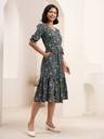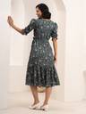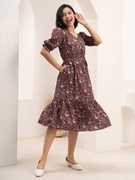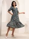 Elevate your wardrobe with the AASK Women's Teal Floral Midi Dress, a stunning blend of elegance and comfort. Crafted from premium V Crush Crepe, this dress features a captivating teal floral print that exudes sophistication. The puff sleeves and short sleeves add a touch of vintage charm, while the tiered design offers a flattering silhouette. A matching belt cinches the waist, enhancing your figure and providing a customizable fit. Perfect for any occasion, this midi-length dress effortlessly transitions from day to night, making it a versatile addition to your collection. Embrace timeless style with this must-have piece.