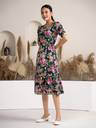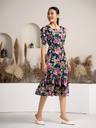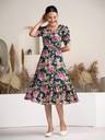 Aask Women's Dark Green Crush Crepe Printed Fit and Flare Western Dress