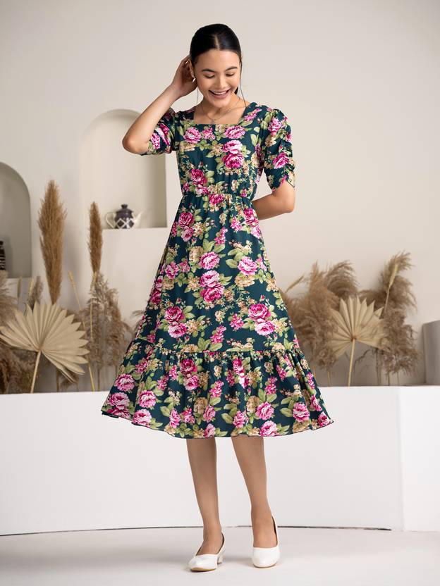 Step into effortless elegance with the Aask women’s dark green floral printed western dress, perfect for any occasion. This dress features a stylish square neckline and half puff sleeves, combining comfort with contemporary design. The cinched elasticated waist accentuates your figure, while the fit and flare silhouette offers a flattering and feminine look. The delicate floral print adds a touch of charm, making this dress a versatile addition to your wardrobe. Available on Amazon, this dress will quickly become your go-to choice for both casual and semi-formal events.