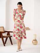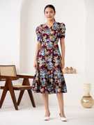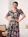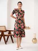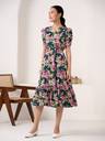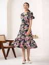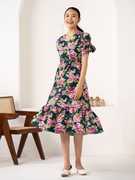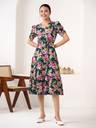 AASK Women Crushed Crepe Floral Printed Green Color Dress