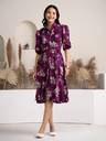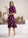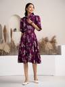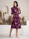 Aask Women's Wine Crush Crepe Printed Fit and Flare Western Dress