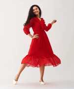 AASK Women Plain & Solid Red Color Butta Work Dress For women