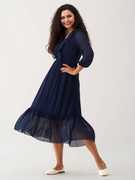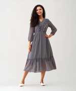 Waist Cinch, Embellished, Fringes, Fit & Flare, Flared Sleeve, Midi Dress, Wrap Dress