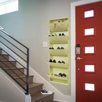 This shoe rack features up to four pull-down doors which enhances its style and functionality. Its sleek and compact design adds a touch of elegance to any space while optimising storage. The clever construction saves valuable floor space. Its compact design provides an ideal fit for any corner of your home or even outdoor areas.