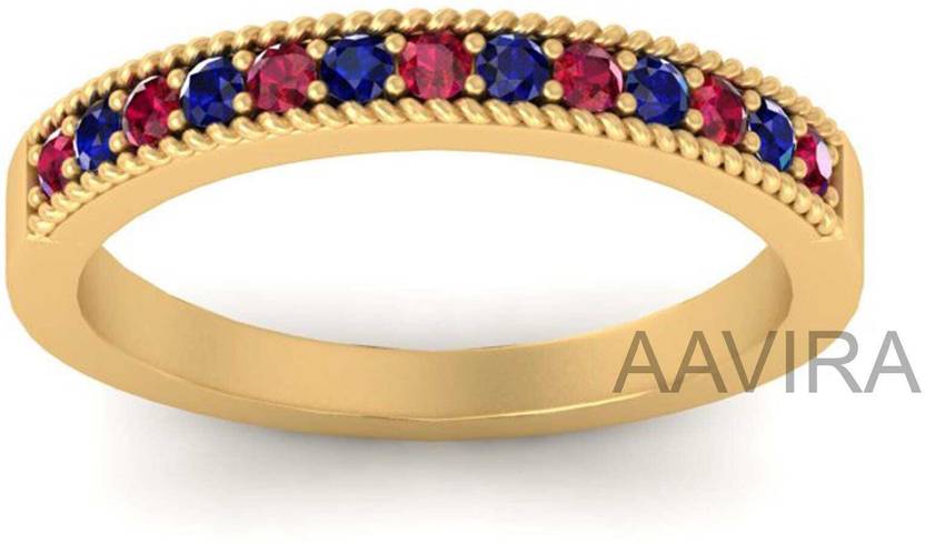This Alternate Sapphire & Ruby Eternity Band is a breathtaking combination of blue sapphire and red ruby stones, set in 14K yellow gold-plated sterling silver. Perfect for stacking, weddings, and anniversaries, this dainty band is a luxurious addition to any jewelry collection.