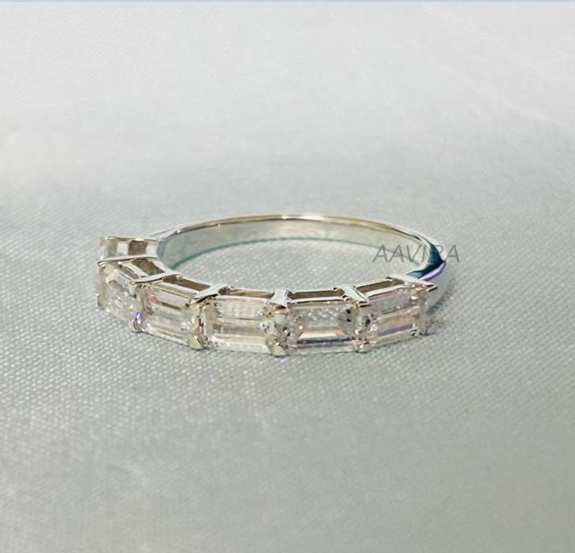 Baguette Half Eternity Ring, Dainty Stacking Bridal Wedding Ring, 14k White Gold Plated Promise Ring