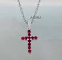 AAVIRA Round Ruby Cross Necklace Silver Pendant