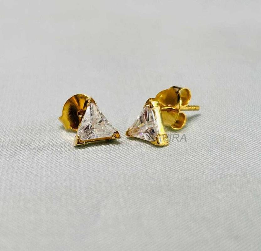 AAVIRA Trilliant Cut Diamond Stud Earrings, Tiny Push Back Diamond Everyday Studs Silver Stud Earring