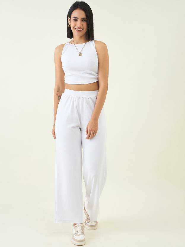 Aayu women one top and one pant valentino fabric, solid print, crop top & sleeveless casual and party wear co-ords set.