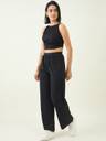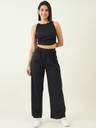 Aayu women one top and one pant valentino fabric, solid print, crop top & sleeveless casual and party wear co-ords set.