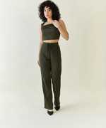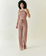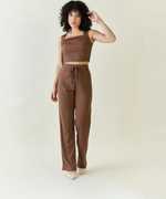 Aayu women one top and one pant rib fabric, squre neck, solid print, crop top & sleeveless casual and party wear co-ords set.